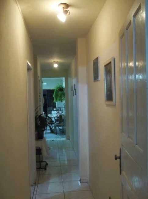 As benfeitorias avaliando (segundo pavimento) são constituídas de uma sala, cozinha, dois quartos, lavanderia, WC, churrasqueira e área de serviço, com uma área construída de 114,65m2, próprio para moradia, sito a Rua Aquidaban n.º 7XXA, construído sobre o pavimento térreo existente sob o n.º 7XX, com 79m2 de área construída, em um terreno que mede 4,00m de frente por 44,00m de comprimento, matriculado no Registro de Imóveis sob o n.º 13.XXX.