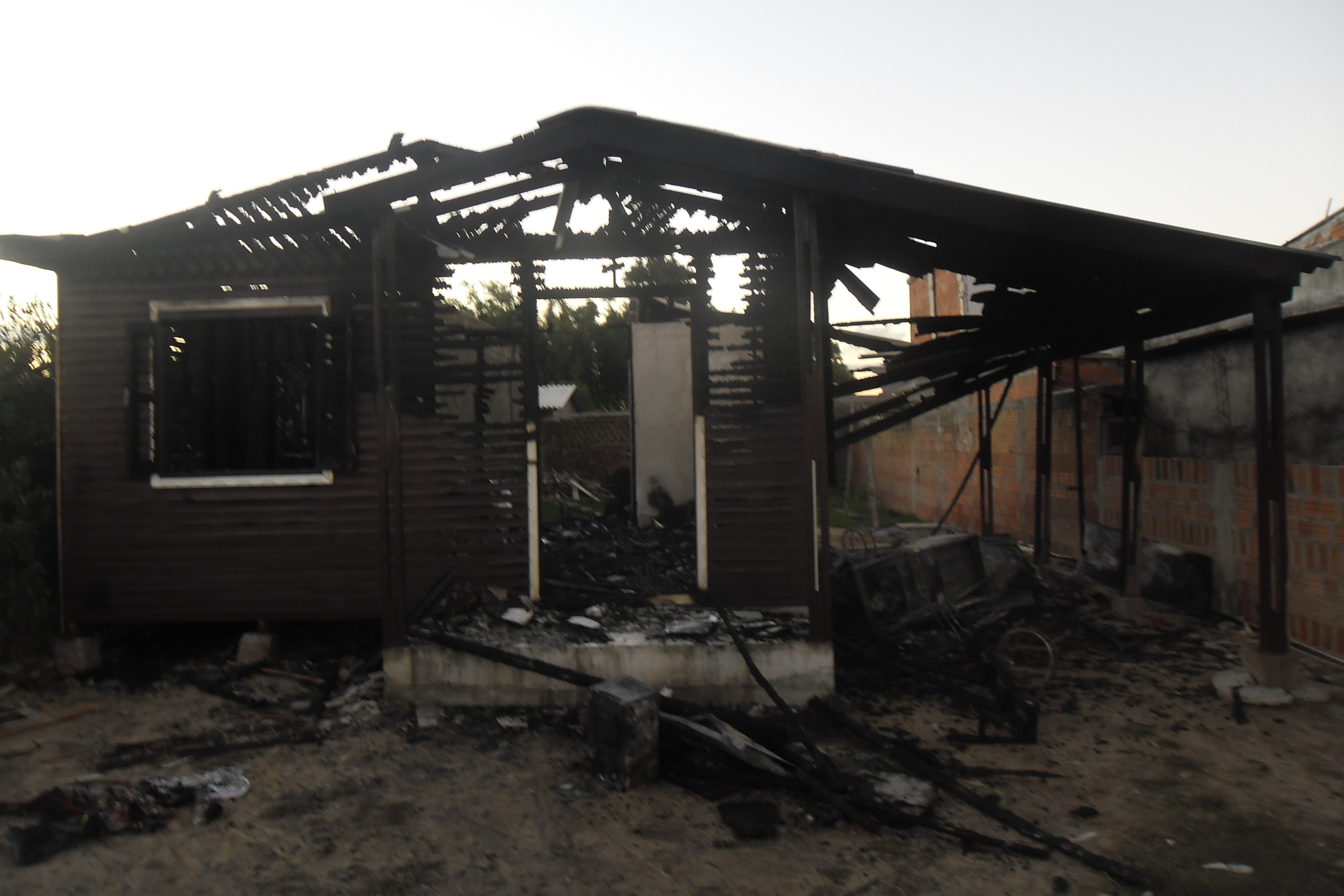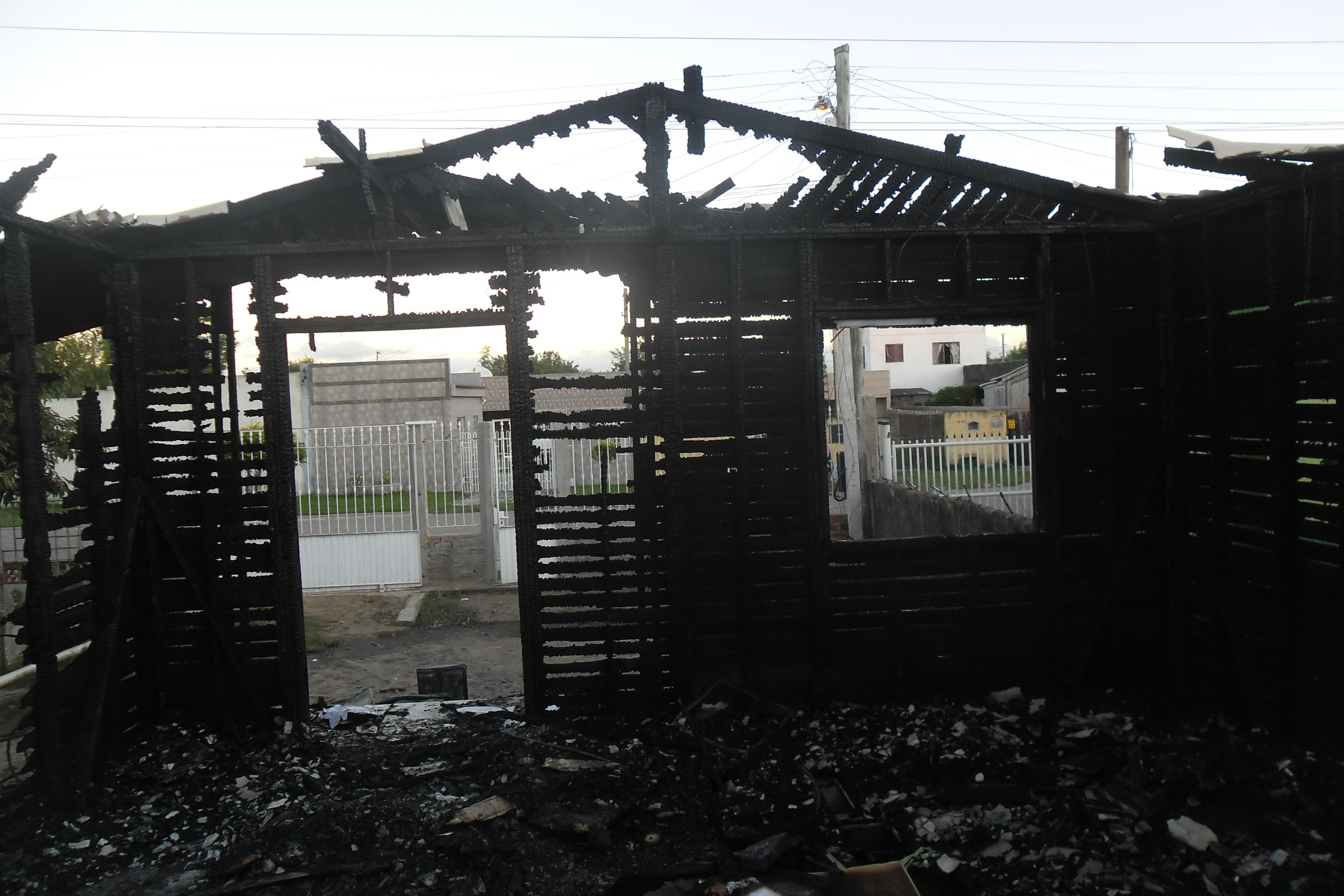 Perícia para apuração da origem de um incêndio, causando a destruição total do imóvel localizado na Vila São Miguel, Rio Grande/RS.